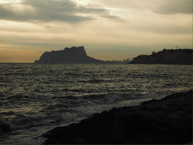 Lunch on the sea front in a town beginning with M. Heading for Calpe, easy to see because it has a big rock. Pass more pro cyclists, and their trucks outside fancy hotels (that’s fancy hotels, not Danish holes, as autocorrect put in).