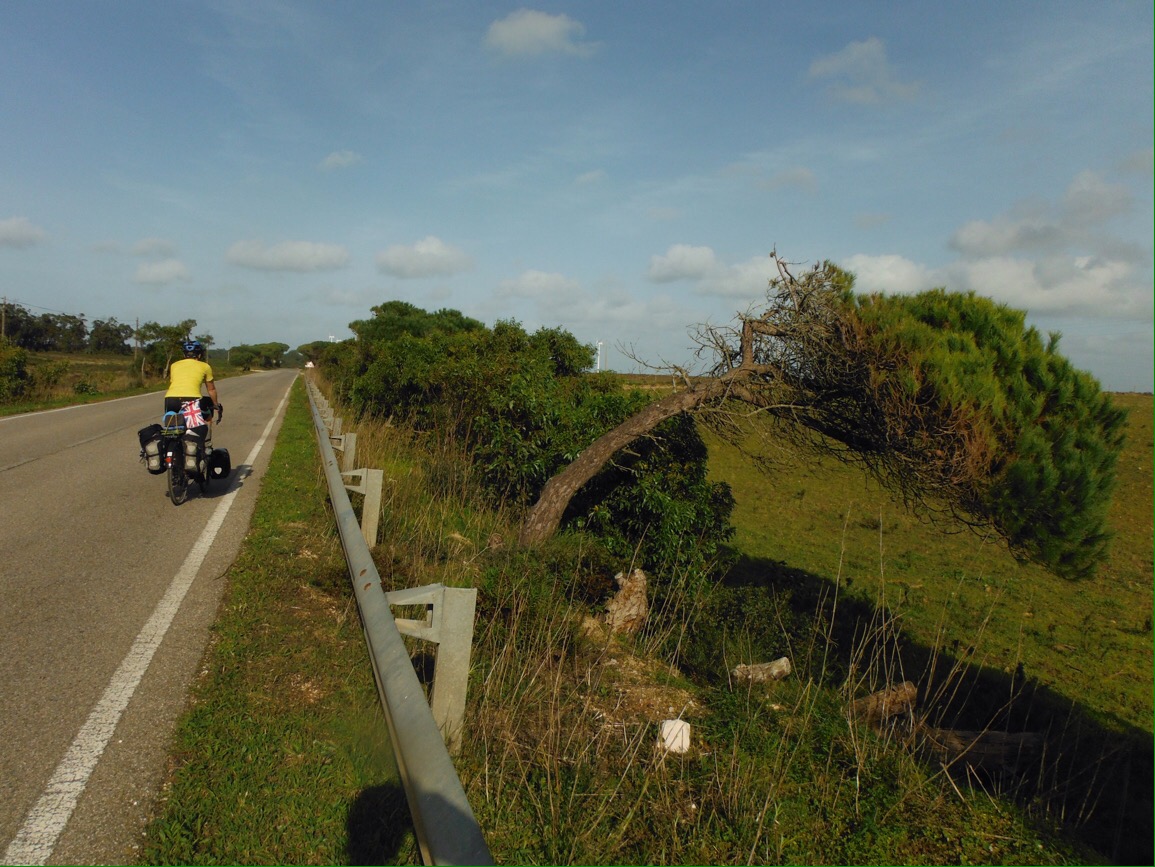 Back on the bikes we started pedalling towards Portugal, knowing that we were only a week or so away from a holiday on the Algarve. Plans to take in Gibraltar on the way were shelved in favour of the more direct inland route to Sevilla and the Portuguese border. There is some seriously hilly terrain in Andalucia and for a couple of days we rode either up or down steep hills – no sign of flat ground or even a slight incline. But as is always the case, these roads have the best scenery and we joined up small white-washed towns that the region is famous for. The first night after Granada we stayed in an empty lodge on the edge of a natural park, and in trying to take a short cut through the park to get there ended up riding a steep downhill gravel road for the last hour. The view across the park and down into the valley we were aiming for as the sun set was magical but the last 10km in the dark was not so fun.