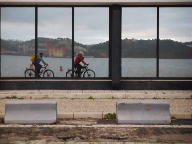 The closer we got to Lisbon, the worse the weather got, and after a day of solid rain we arrived at our hosts in the Portuguese capital dripping wet and took two days for everything to dry out. Lisbon is surrounded by upmarket holiday resorts and the one place everyone had told us to visit if we were in the area – Sintra. Perched high up in the hills about 30km from Lisbon, Sintra has palaces, an old ruined castle and gardens to visit, and if you google it (other search engines available) you will see why it attracts the crowds. However the weather was even worse, and after riding uphill to get there, including a really steep cobbled road (aka death trap in the wet) could see nothing but cloud.