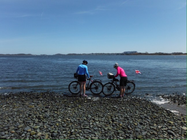 Walking around in shorts when it was not quite ‘shorts weather’ with our fine athletic figures turned a few heads and we were asked at least 10 times if we were in town for the marathon. Not likely. Some might disagree but I think cycling 5000 miles across the country is much more preferable to running 26 miles. But it was fun to watch, the city really gets behind the event and we even had someone to cheer along – Rosie, the daughter of our hosts, who ran a very impressive 3:08. It was so exhausting watching the race that we had to have extra helpings of ‘marathon cake’ back with the family after. We rode out to the sea and dipped our wheels in the Atlantic Ocean (mandatory before starting a cross country ride). Our last morning was spent talking to a class of Y5s about the trip so far. They were really inquisitive and spent about 30 minutes asking questions such as ‘what inspired you to do a biking trip’ ‘who rides faster’ ‘how did you tell the donkeys apart’ and ‘are you going to Hawaii/Asia/the Middle East/etc…’. As with all kids so far, the picture of the donkeys received the most positive attention.