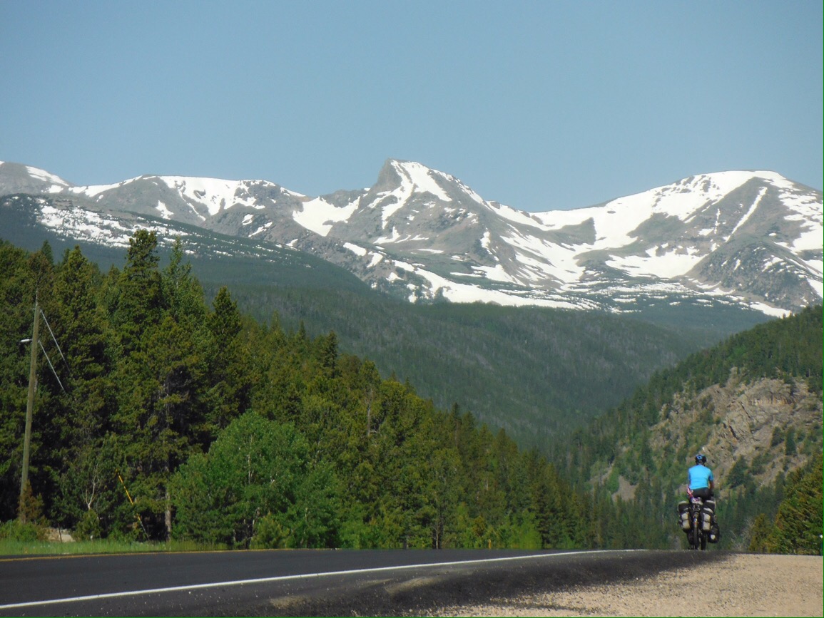 It took us six days to ride to Grand Tetons National Park on the very Western edge of the state, and the landscape changed little across this time. It is rocky. It goes up and down a bit. There’s not much in the way of towns, people, even animals. Just rocks. It’s hot and there is no shade. But it is pretty cool. More vast, open spaces. The small towns look as you expect Western towns too – lots of wood buildings and hunting supplies.