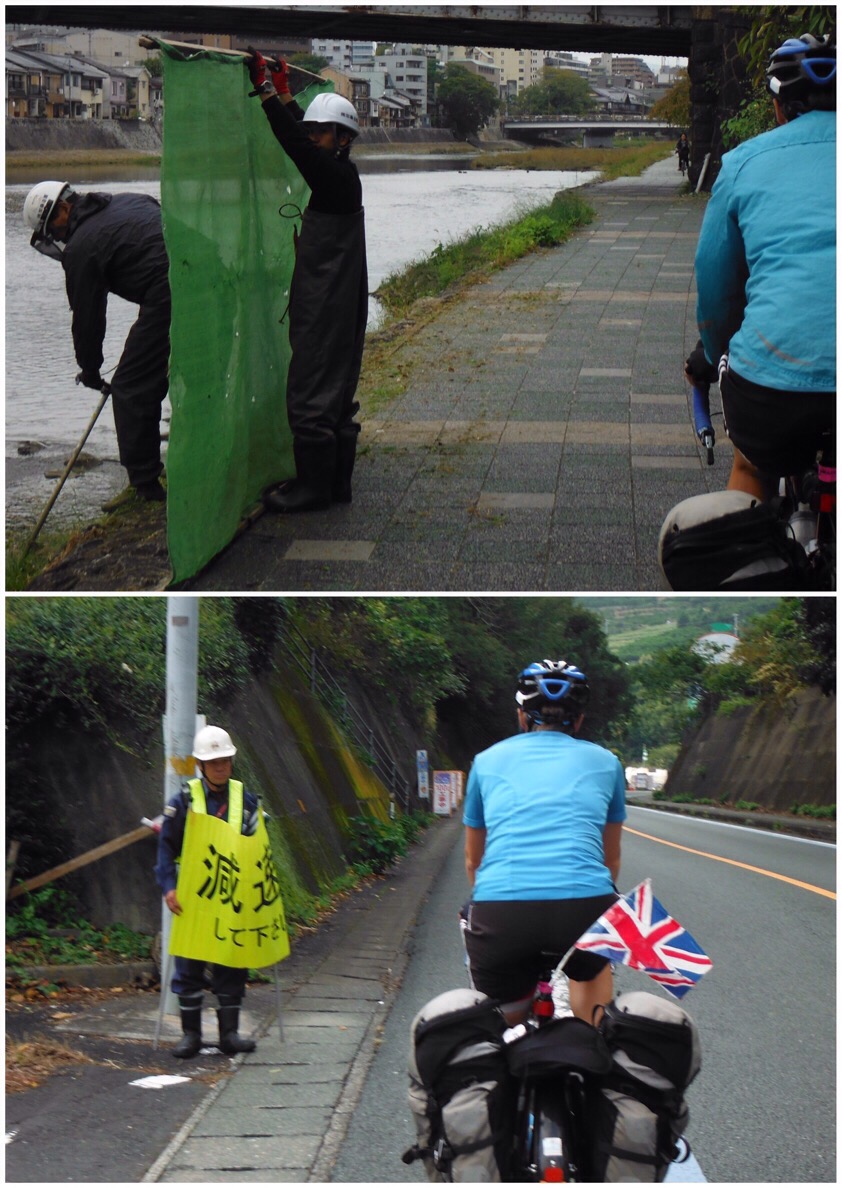 It seemed to us that the vast majority of Japanese men nearing retirement are employed in the construction industry. Mostly in the important task of supervision. Every construction site, however big or small, would have a team of construction supervisors at the entrance making sure there was no confusion over who had right of way and directing traffic and pedestrians with large glow sticks/lights sabres or flags. This role was taken seriously. And for cyclists it is amazing – as soon as they see you coming, you see the oversized glow stick wave and the traffic is held up until you are safely through. Awesome.