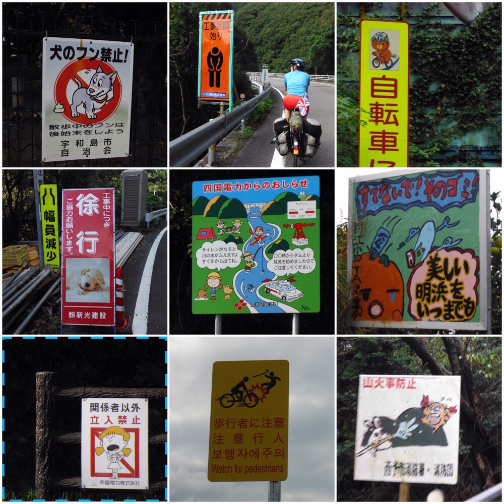 Like the loser I am, I find signs in different countries fascinating. It shows how there are innumerable ways of conveying the same type of instructions/warnings. In Japan it is mostly kid cartoon style, even sometimes kids drawings. We wondered if towns had competitions in primary schools to design some signs, particularly those telling you not to drop litter. Quite serious warnings (e.g. be careful not to die from this or that) were portrayed with cartoon animals. Others just made us laugh.