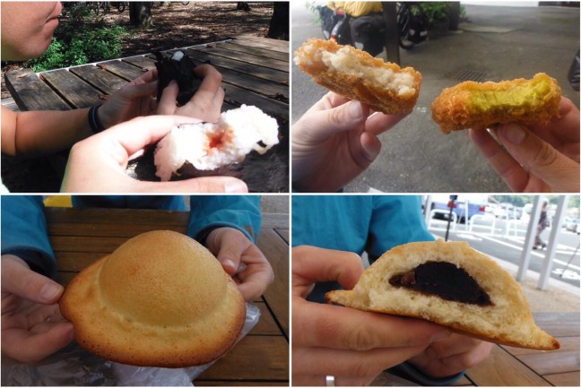 We mentioned banana surprises earlier, but this was not the only food surprise. A lot of food was a surprise for us as we had no idea what we were buying a lot of the time, but particular foods even when you thought you knew them could still surprise you. Take the humble hat cake. (No? It’s a Kochi speciality. A cake shaped like a hat). The first one we tried was plain. It was great. Then we bit into our next one to find a sweet bean paste filling. Surprise! Another one of our favourite snacks was a fried potato fritter type thing that had different flavoured fillings. But they all looked the same on the outside so we never knew what our filling might be. Meat, vegetables, curry… surprise! The perfect cyclist snack, onigiri (a rice triangle wrapped in seaweed), has flavoured fillings according to the colour of the label. But we never seemed to get the same one twice. It was always a surprise.