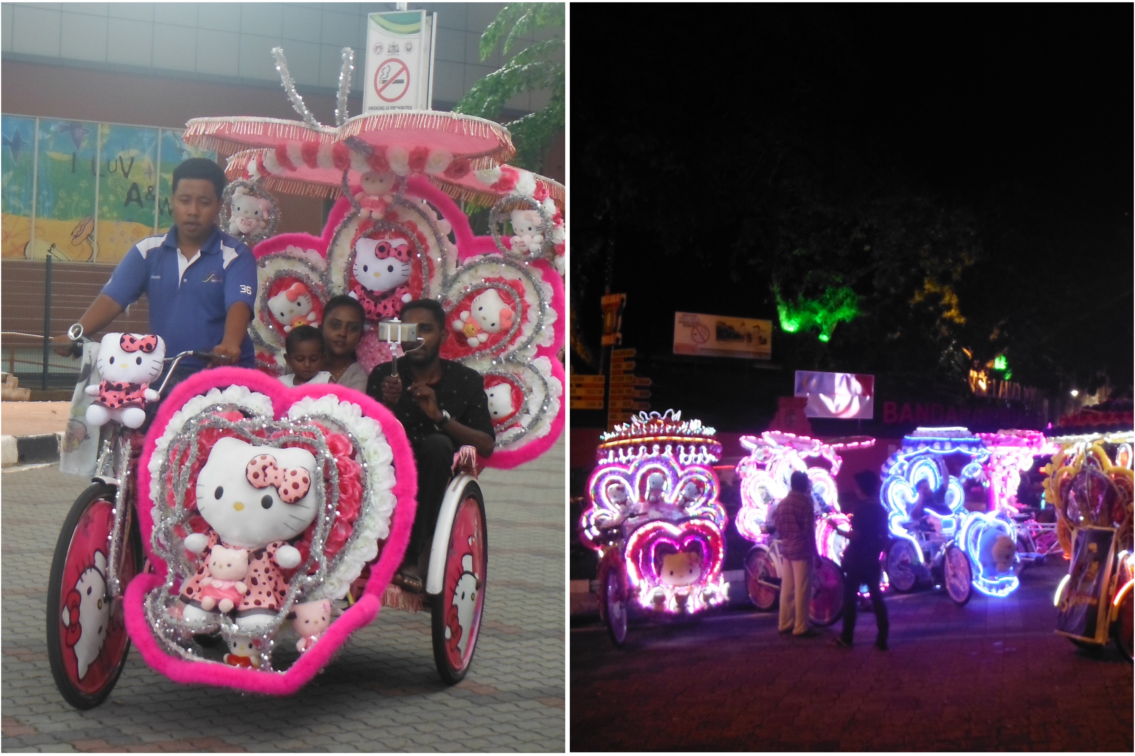 It’s also on a river, and by the sea, has street art and our favourite thing, decorated trishaws (like rickshaws, but it’s a bicycle with a kind of sidecar). There seemed to be a trishaw driver contest for a) the most cuddly toys and b) the loudest music, complimented at night by c) the most extravagant lighting. Seeing a grown man pedal a bicycle covered in Frozen toys and flowers and blasting out “let it go” is quite the spectacle. Chinese New Year celebrations were in full swing which meant great decorations and an evening of fireworks and dragon dancing. I also had my hair cut. I’ve explained this at the end of the blog post for those who are interested. It’s quite long but I couldn’t leave any detail out…