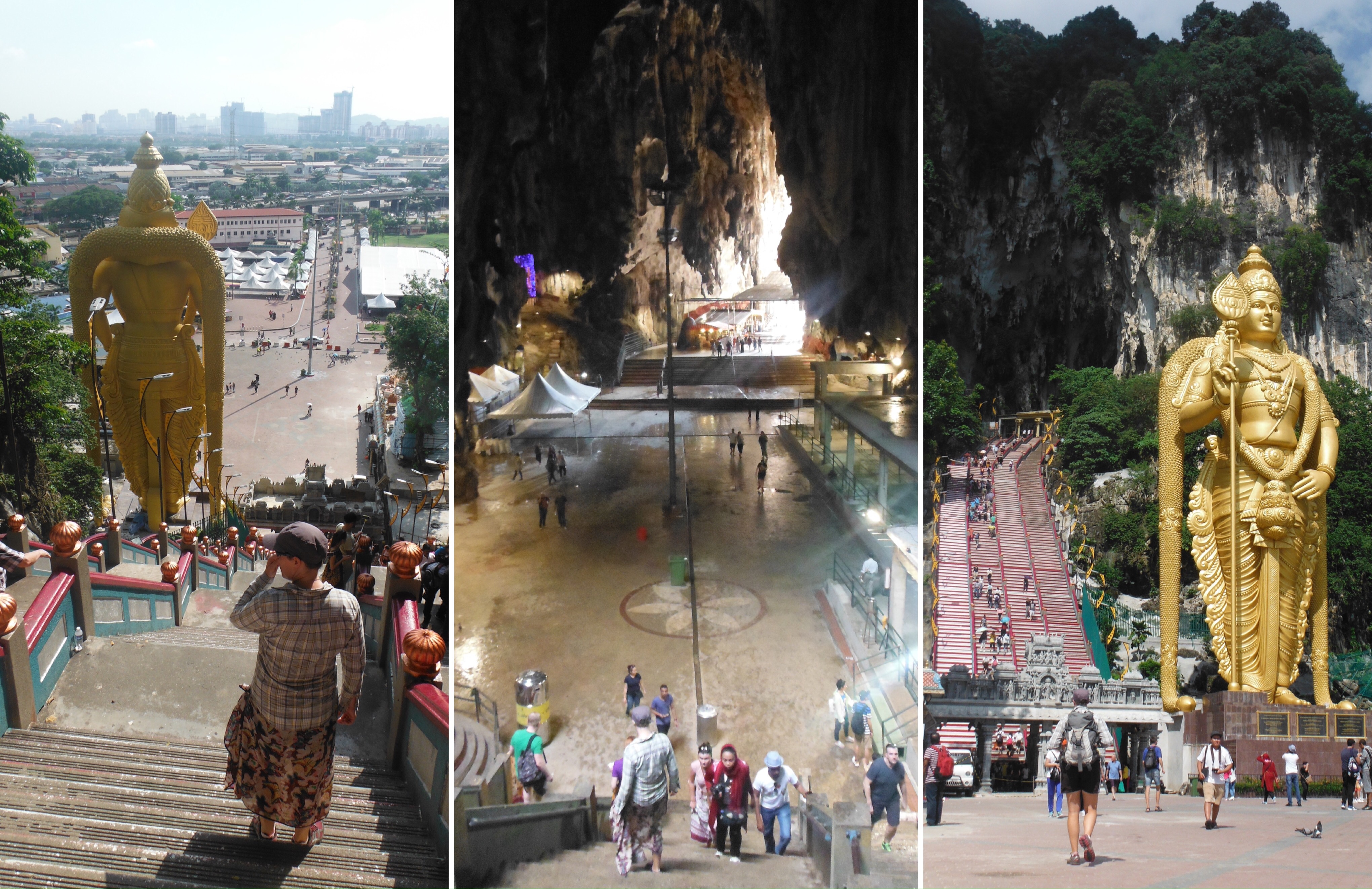 Back at Petes we had another day in the city picking up our passports – and they were handed back to us with Chinese visas inside. Despite not having any tickets booked into or out of the country the visas were granted. Next challenge, Russia. To celebrate we spent yet more time on a train and visited the Batu Caves north of KL, huge limestone caves with Hindu temples and crazy decor inside (and a huge gold statue outside). Climbing over 250 steps was even more sweat inducing than cycling in the heat, but it was worth it.