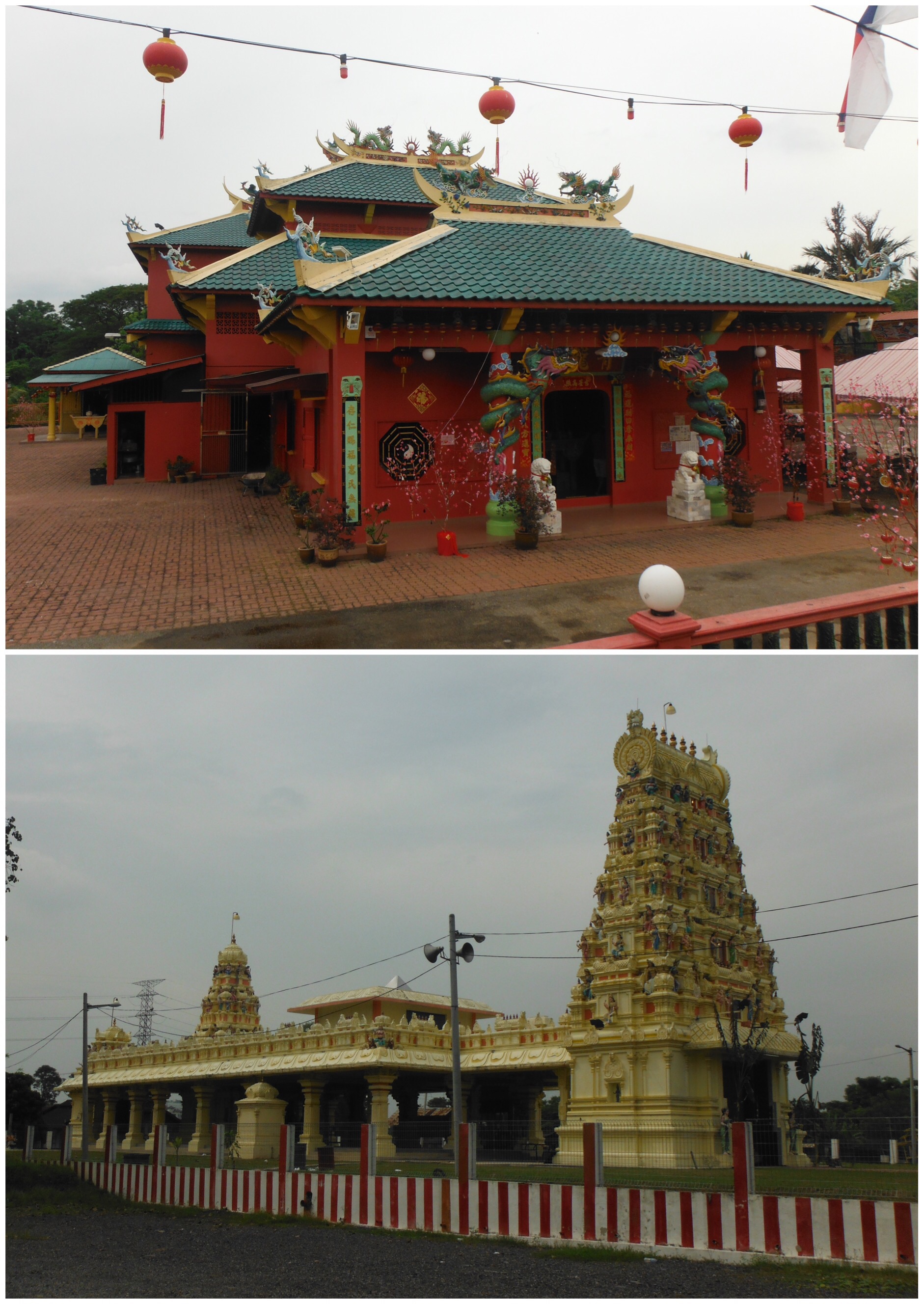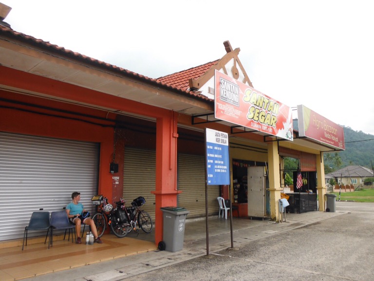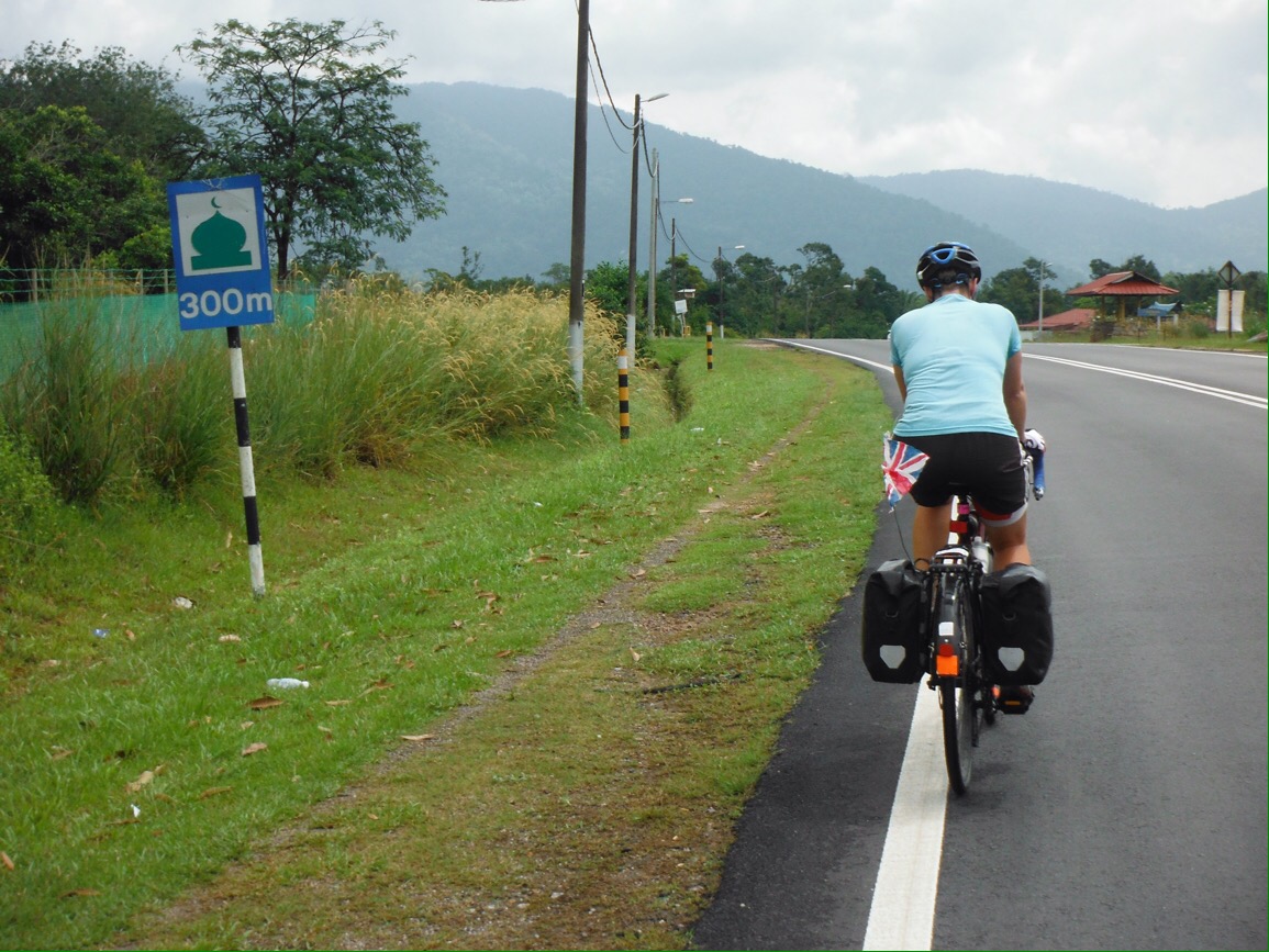 You learn a lot about a place by riding through on a bike – there’s enough time to take notice of the little things. The moped repair shops, the washing machine repair shops and the sewing machine repair shops. The old men sitting drinking tea, the children playing, the moped riders carrying anything from several children to wheelbarrows to strimmers. The pregnant cats (I have never seen so many). The holes at the side of the road you could just fall down. The fruit stalls selling things we have never seen before. The numerous cafes offering different things at different times involving a lot of guess work and welcome shade. The many mosques, Hindu, Chinese and Buddhist temples. The lizards squashed in the road (and the odd live one crossing in front of us). It’s all new to us and we love it, it’s great fun.