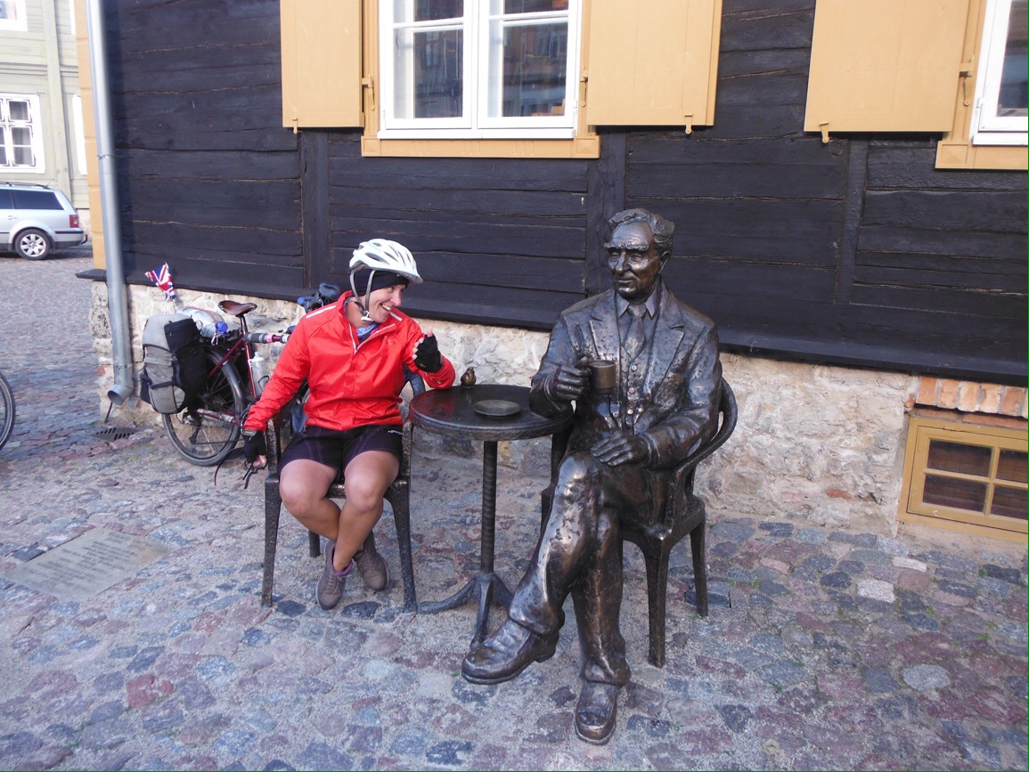As we arrived at 10pm I had booked a cheap hotel room to save us having to “ride around a strange town in the dark” looking for a place to stay. Rolling off the ferry at 10.15 pm, the sun was still above the horizon. We were five days from midsummer and the days were long. Ah well. The Sport Hotel was the bargain of the century at only €14 for the biggest room ever, with the answer to every British cyclists dreams, an electric kettle. There was even a sofa. Welcome to Latvia.