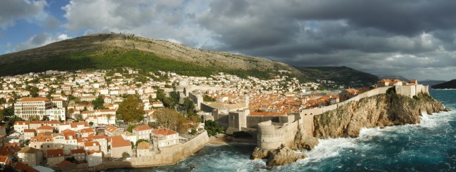 Back on the mainland, we were excited about getting to Dubrovnik – one of the few places we had in mind to definitely visit. Although there were several more ‘must-see’ islands on the way, as the forecast was for cloud and rain for a few days these were regrettably bypassed in favour of a city with more potential for rainy day activities. Next time, Korcula, Hvar and Mljet. It would also be the fist time we spent more than two nights in the same place in 8 weeks – much needed by this point. The ride into Dubrovnik was the most spectacular section of the coast road, unfortunately it hammered it down for most of the day. So instead of coastal scenery being the highlight, that day will be remembered for the 10km section of Bosnia (country #11) that the coast road goes through. But not for scenery, people or culture (though I’m sure these are all great when it isn’t chucking it down), but for food. Not wanting to pass through a new country without stopping, and starving and wanting a note for our map wall we took out the equivalent of about £7 from an ATM and went straight to a roadside bakery where £3.50 bought us a pile of pastries. We had become fond of the burek since discovering it in Croatia – a long thin pastry filled with either cheese or meat and rolled up – and the Bosnian one was our best yet. So we sheltered from the rain by a posh hotel where Japanese tourists ran into from their coach (not quite sure how they sold them ‘lunch in Bosnia’ as a highlight of the day, and in the rain it did not look it’s finest) and stuffed ourselves. Most cyclists on this route will ride in and out of Bosnia in about half an hour, we took almost two, most of which was spent eating. What’s not to like?