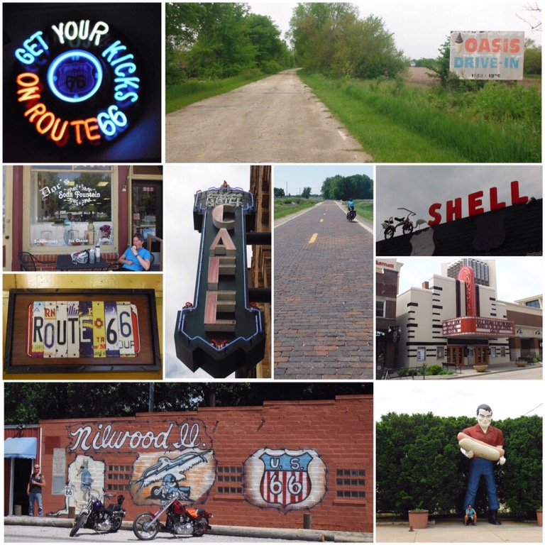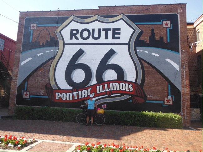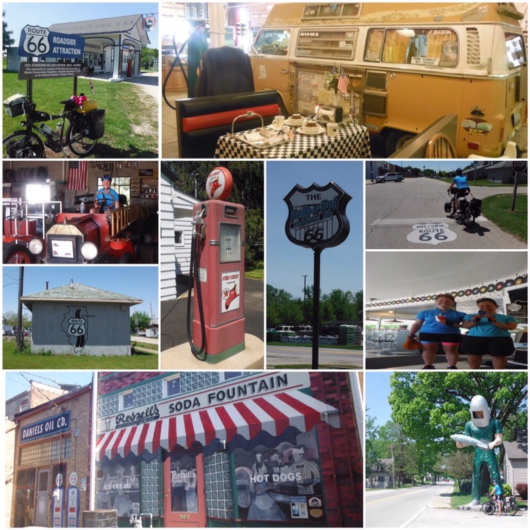 We didn’t start in Chicago – riding through miles of city suburbs isn’t that appealing – so joined “historic Route 66” as it is officially called just south of the city. This day marked quite a change in the trip, as it was the first time we had ridden for a whole day on busier roads. Straight away the noise of the interstate that runs alongside the route was noticeable after being accustomed to peaceful bike paths. The heat had also been cranked up a few notches, to the point where sweat dripped from various bodily locations for the first time. The scenery opened out and we could see for miles and miles. I’m not sure where the mid-west officially starts but life felt different in more than one way from this point on.