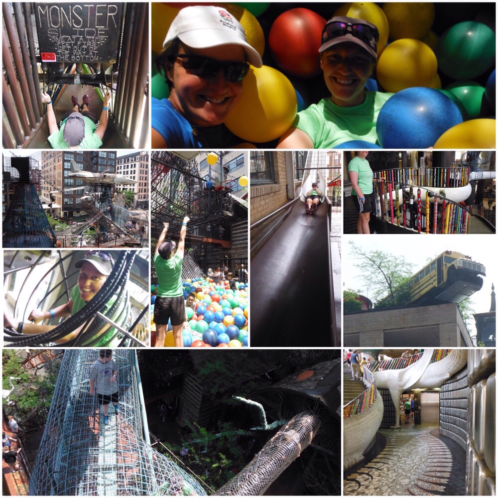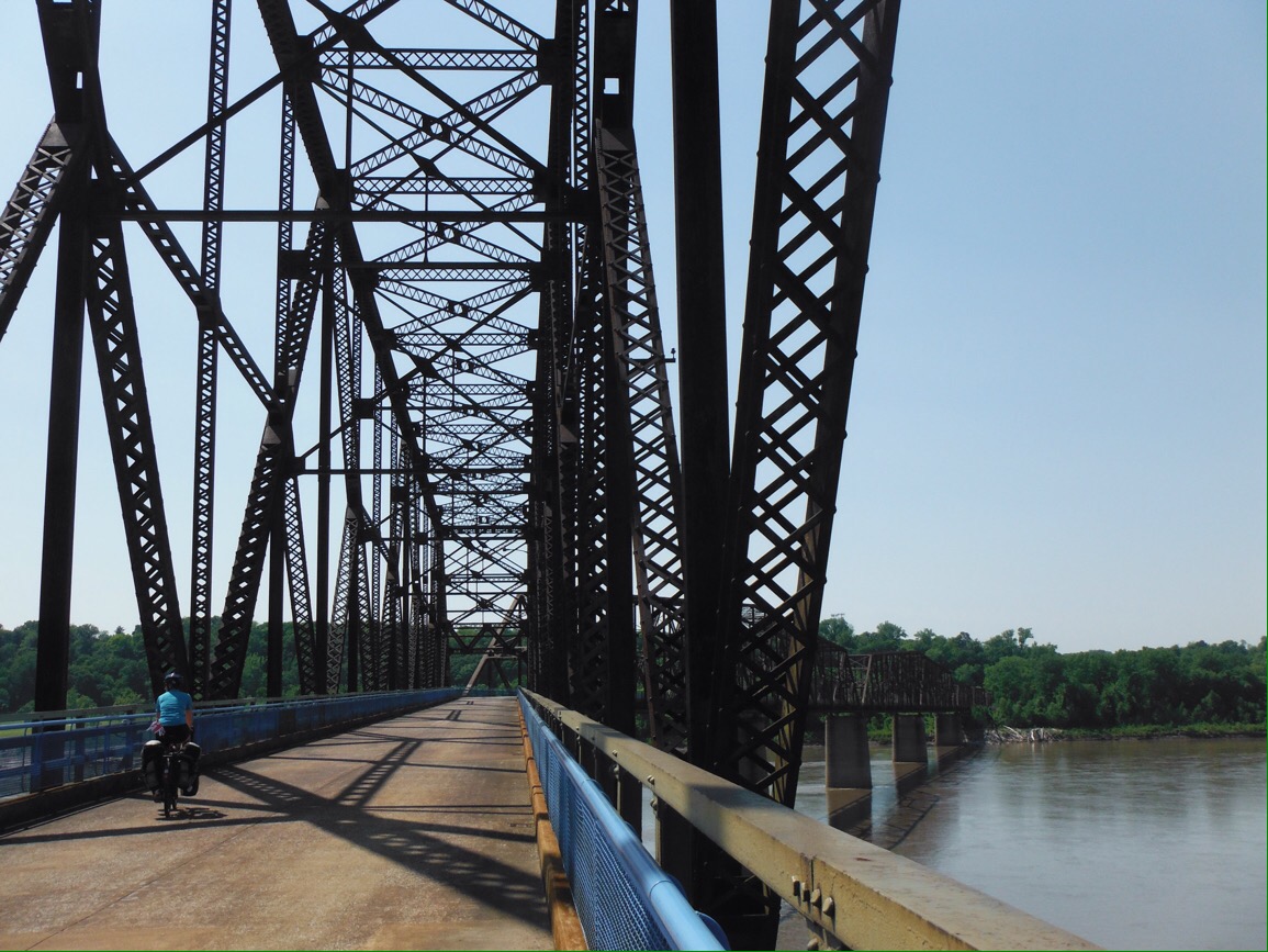 We would follow the Lewis and Clarke route for a few days out of St Louis but first we had to explore the city. Doug and Marta our amazing warm showers hosts met us at the Gateway Arch (gateway to the West of course) and took us on a bike tour of the city. The next day was the most tiring rest day imaginable as we went to the St Louis City Museum. This place bears little resemblance to a museum but is more accurately a huge adventure playground for adults and kids, with pretty much everything made from salvaged material. There’s an old FBI plane to climb through, a school bus perched on the roof top, a large ball-pit, underground caves and mazes of climbing frames made from old industrial factory cast-offs. We spent four hours hauling ourselves through small holes and climbing over things (including small children), to the detriment of our arms the following day. It’s a very cool place. But it’s not a museum. And It’s definitely not a rest day activity.