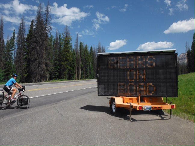 Wyoming has a few claims to fame. It was the first state to allow women to vote; it is the least populated state; it is the home of the first designated National Park in the USA (Yellowstone); it has no pro sports teams; and it has the largest collection of American firearms in the country (museum in Cody). Quite a mixed bag. Yellowstone was on our radar; the gun museum was not. There’s a couple more things to add to the cyclists “highlights” list: it’s the home of the most persistent mosquitos yet, and it’s bloody windy.