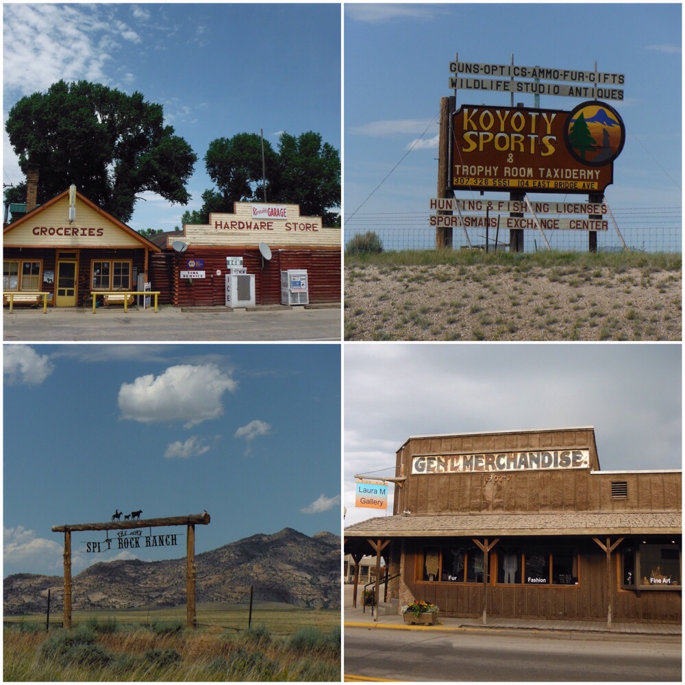 It took us six days to ride to Grand Tetons National Park on the very Western edge of the state, and the landscape changed little across this time. It is rocky. It goes up and down a bit. There’s not much in the way of towns, people, even animals. Just rocks. It’s hot and there is no shade. But it is pretty cool. More vast, open spaces. The small towns look as you expect Western towns too – lots of wood buildings and hunting supplies.