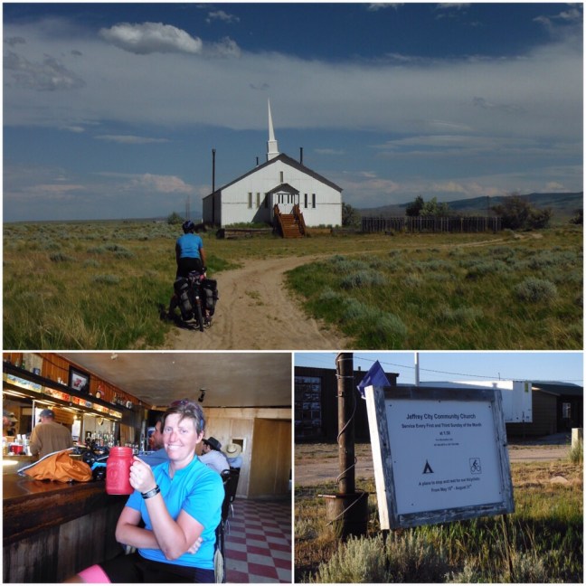 From Rawlins it is 130 miles to Lander with only Jeffrey City (population 58) in between. As we were now on the Trans America bike route, the most popular way to cross the USA by bike, a lot of cyclists need to stop in Jeffrey City. The church has opened its doors to passing cyclists and the only bar in town fuels them up. For us riding West, the wind picked up 20 miles from ‘town’ and did its best to stop us getting there. It was so strong at times that it stopped us dead, and we were pedalling as hard as possible for 5mph. The last 10 miles took two hours and we collapsed into the bar in front of two pitchers of iced water and ordered an all day breakfast. All of the other cyclists in ‘town’ had been riding in the opposite direction so had arrived ages earlier, were showered and refreshed and regaling stories of being blown by the wind and not having to pedal for the last 20 miles. It was a bizarre scene in the bar: a row of men in cowboy hats who could probably be found there at the same time every day, and cyclists. It’s probably the only place in the West where cowboy hats sit so harmoniously alongside lycra.