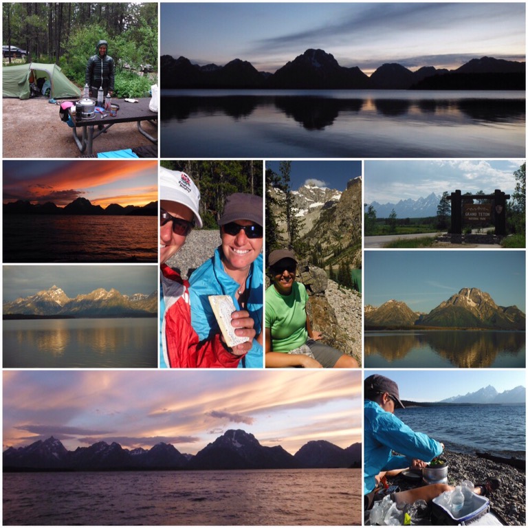 From Dubois we would be in grizzly bear country, and the warnings increased as we got closer to the Tetons. It’s a bit unnerving to be on a bike and hear that a grizzly likes hanging out at the top of the pass that you will be pedalling over very slowly. But we didn’t see him. Or any of his friends. Which was nice. The Teton range welcomed us for the ride down to the park and we found a great campsite by Jackson Lake to stay for a few days, which turned into a week. We are lucky to be on the kind of trip where if we find somewhere nice, and wake up wanting to stay an extra day, we can do that. Six times in a row if we like. This was the nicest place we had been so far and we spent the week sleeping, swimming in the lake, sleeping, eating down our food supplies, sleeping, and sitting. A great way to recover from the six days fighting the wind.