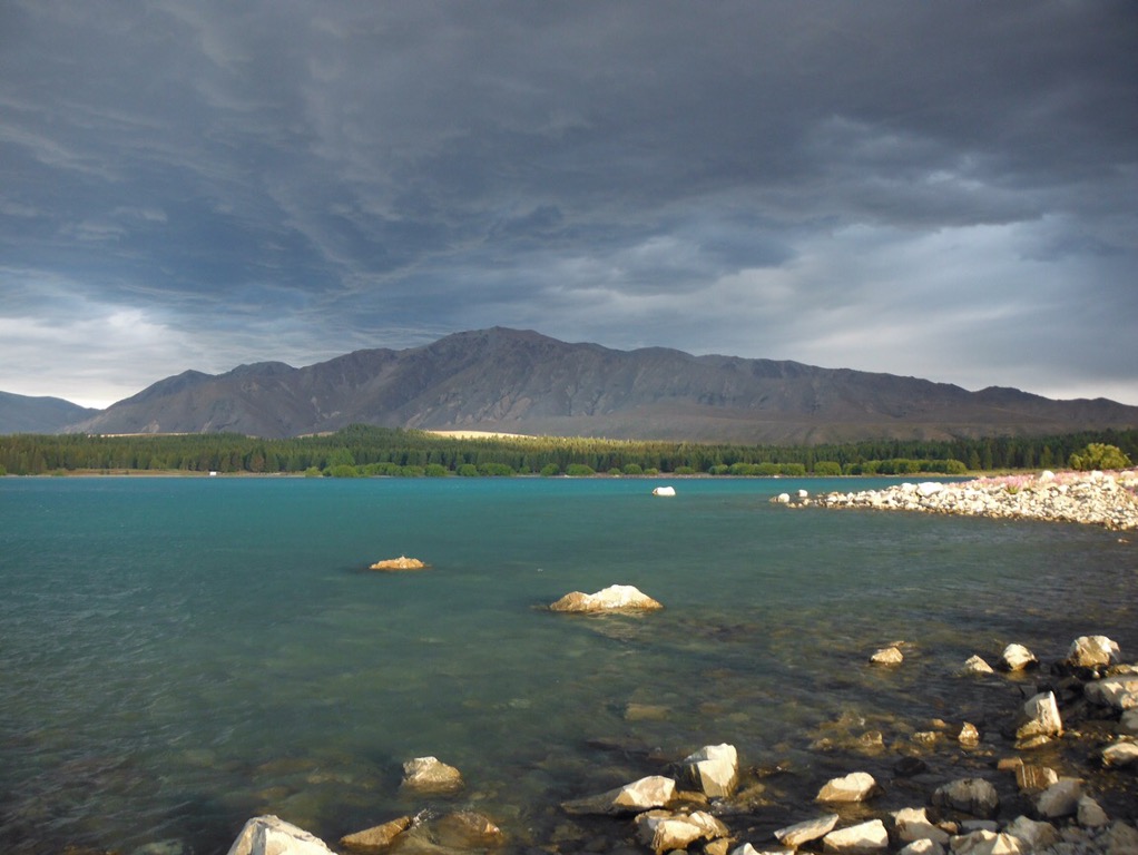 After a couple of nights in Christchurch with friends old and new (and some spectacular cakes), day 1 on the road took us to another old friend on a farm out on the Canterbury Plains. We awoke the next day to gale force winds and black skies so wimped out of leaving for 24 hours and gratefully accepted another meat filled day including slow cooked lamb from the farm. The following morning things had hardly improved but hey this is New Zealand, weather is unpredictable and so we pedalled away from our luxurious weekend farm stay trying to remain upright on the bikes – not easy. We reached the junction where we had planned to turn right to ride over Arthur’s Pass to the west coast. We looked left and saw blue skies and felt the wind at our back. Then we looked right and felt the gale force winds in our face, looked at the black clouds covering the mountain, looked at each other and almost at the same time said “let’s sack that off and go the other way instead”. So off we rode in the opposite direction as planned, towards the central lakes region. Arthur’s Pass and it’s wind and rain could wait. (And it did…)